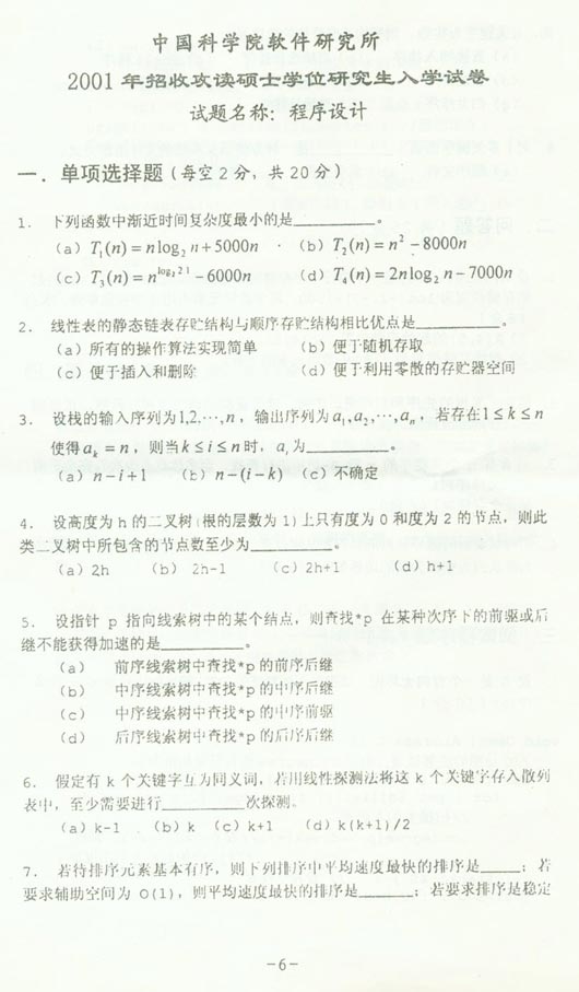 试题:(中科院)2001年软件所程序设计试题