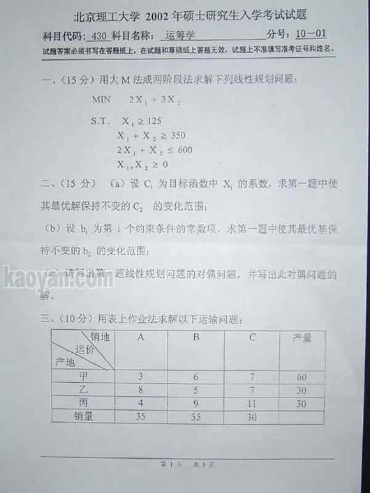 试题:(北理工)2002年运筹学试题