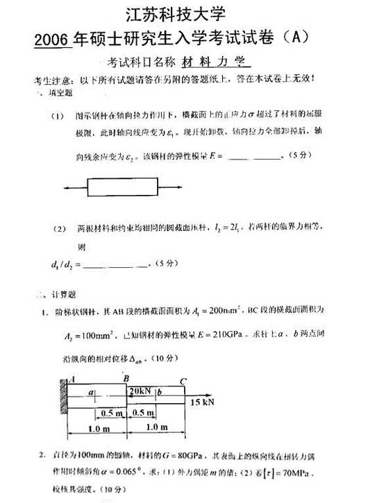 试题:(江苏科技大学)06年材料力学考研试题