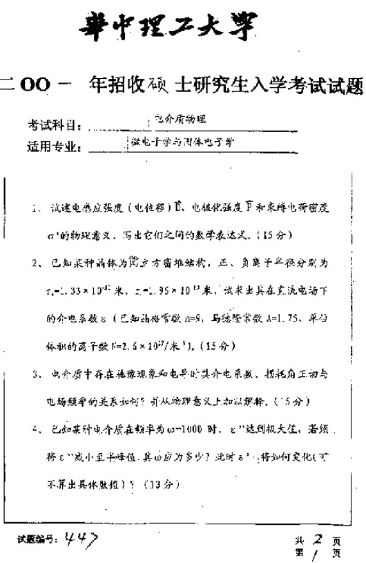 试题:(华中科技大学)2001年电介质物理