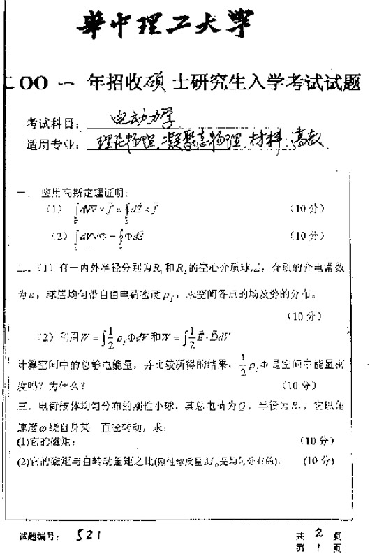试题:(华中科技大学)2001年电动力学试题