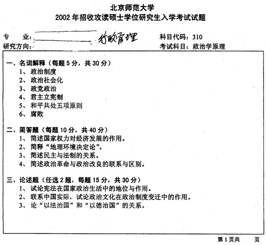 试题:(北京师范大学)2002年行政管理政治学